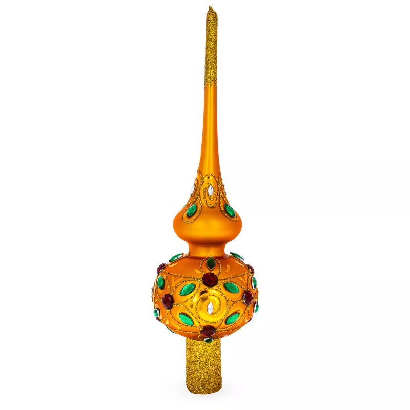 BestPysanky Multicolored Jewels on Gold Glass Christmas Tree Topper 11 Inches