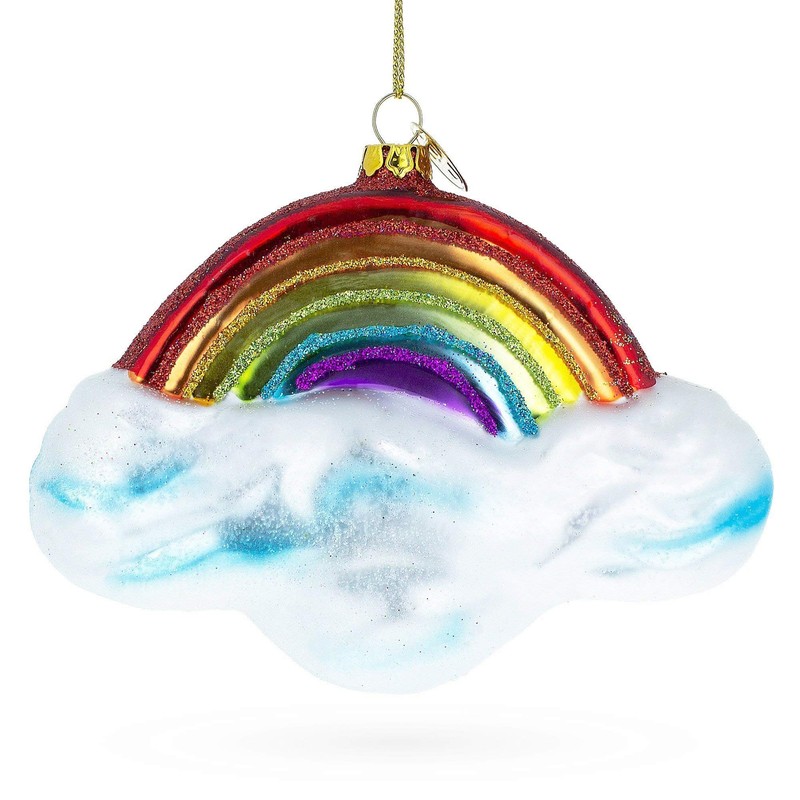 BestPysanky Rainbow Over Clouds Glass Christmas Ornament