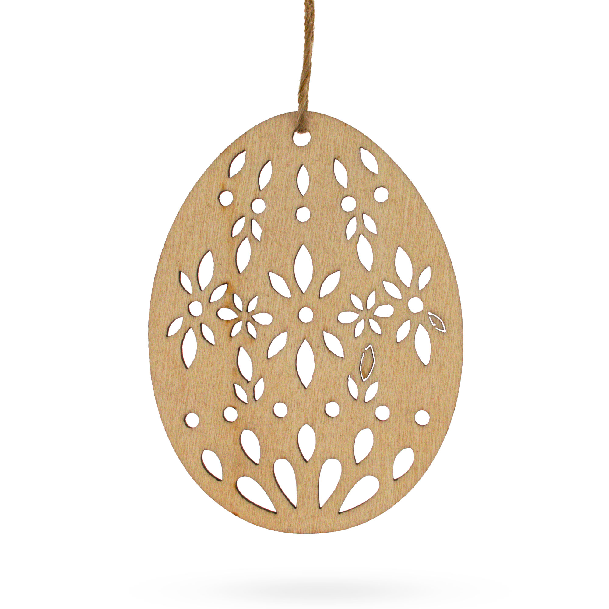 BestPysanky Set of 3 Easter Egg Unfinished Wooden Flowers Ornament 3.15 Inches