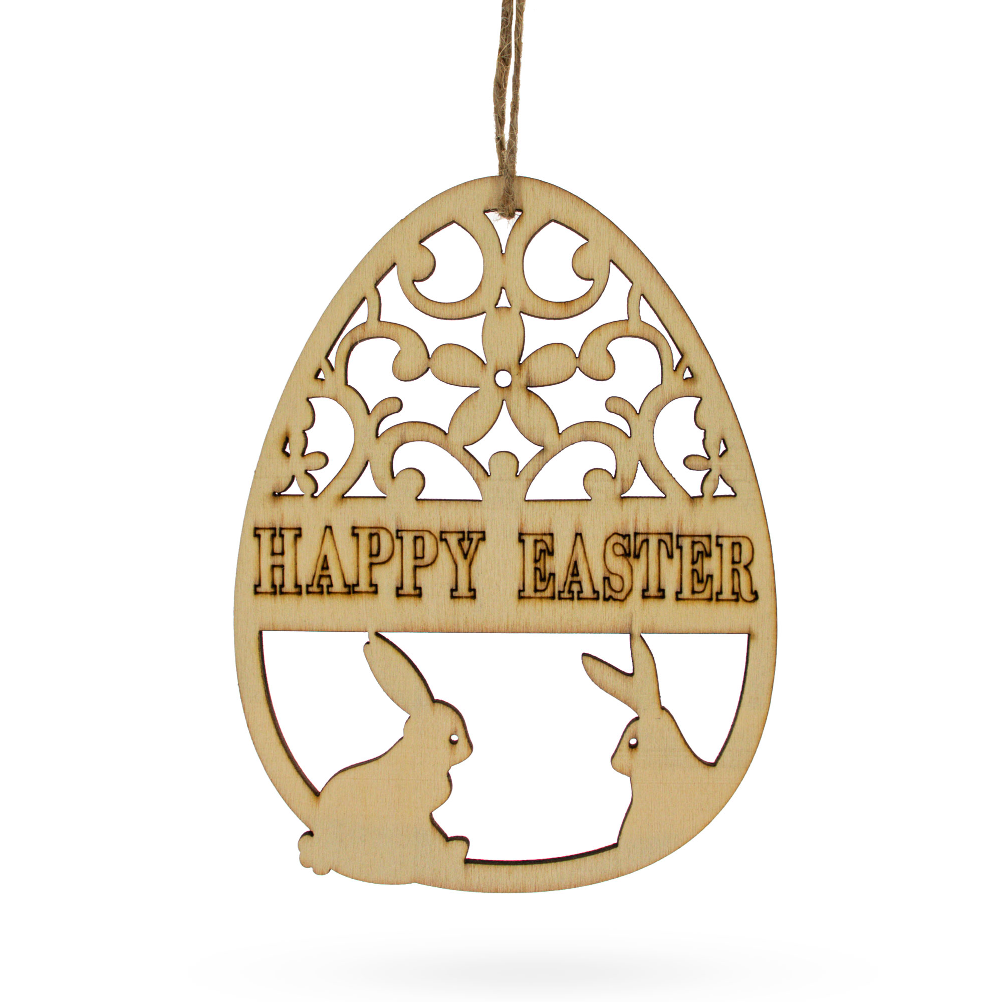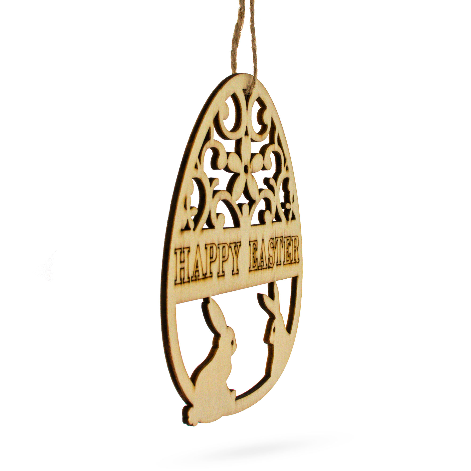 BESTPYSANKY Set of 3 Happy Easter Egg Unfinished Wooden Ornament 4.3 Inches