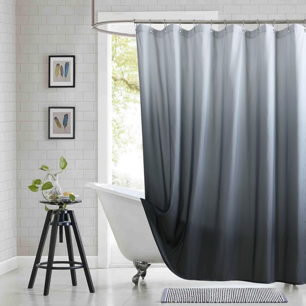 - RUSTPROOF GROMMETS: Each 108 inch ombre gray shower curtain has a reinforced top header with 18 metal grommets that fit most hooks; In addition, a weighted hem is sewn into the bottom of the shower curtain to keep it in place during use