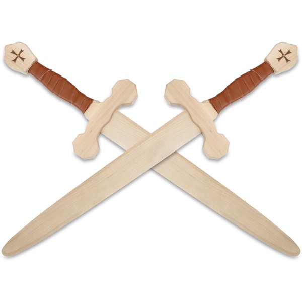 BestSaller 1012 Templar Sword, Birch Wood, Brown Faux Leather Wrap, Baked Templar Cross, 25 Inch (Pack of 2)