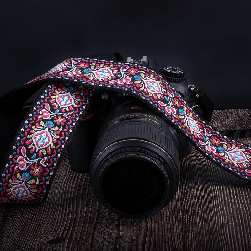 - ✔︎【Top Material】This camera strap is made of 2 layers of cotton fabric, embroidered with floral patterns on the surface, adds vintage aesthetics to all camera straps, black back is made of soft micro brushed cotton canvas, making it non-slip and skin-friendly. The double-layered genuine leather ends and reinforced stitching ensure durability that has been loaded to over 50 kg - much heavier than any camera you would ever encounter!