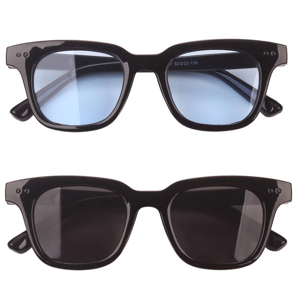 Bestum Inspired Square Sunglasses With Rivets Tinted Lens UV400 (Black, Light blue+Grey)