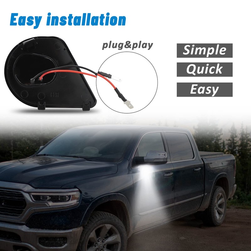 - 【Perfect Fitment】: This LED Puddle Light Compatible with 2010 2011 2012 2013 2014 2015 2016 2017 2018 Dodge Ram 1500 2500 3500, 2011-2018 Dodge Ram 4500 5500.Just solid piece, with no turn signal indicator.