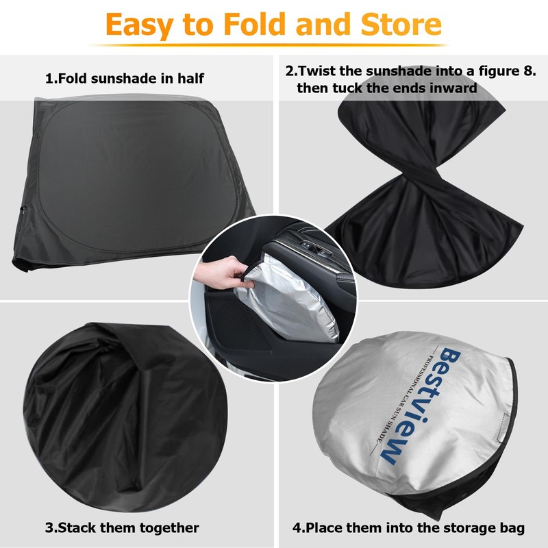 - 【Easy to Install & Foldable to Store】:It can be easily installed and removed in just a few minutes, which is convenient for daily use. It adopts elastic memory steel wire and will never be deformed. It can be easily and conveniently stored when not needed, and you can use the included storage bag to easily stuff the windshield visor into the car