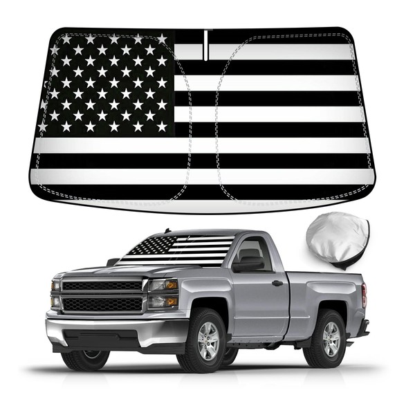 Bestview Windshield Sun Shade American Flag Custom Fit for 2014-2018 Chevy Silverado, Foldable Front Window Sunshade Sun Visor Accessories Protector Block UV Rays Heat