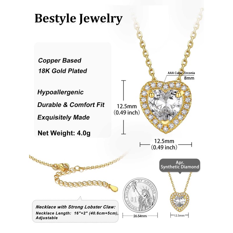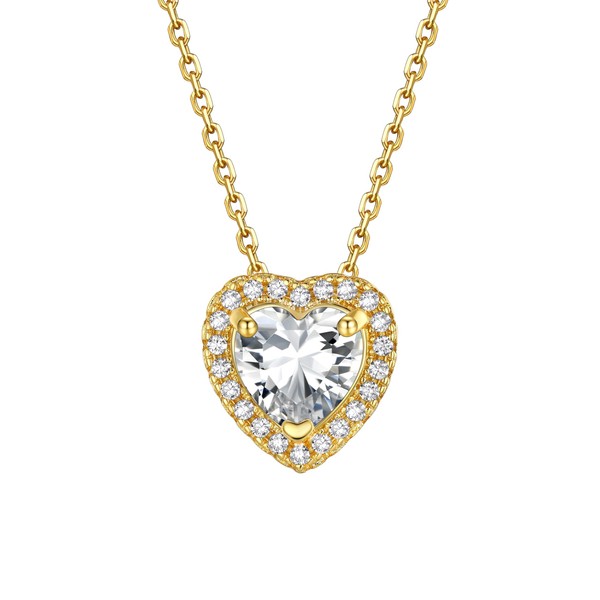 Bestyle 18K Gold Plated Heart Cut Birthstone Necklaces for Women, April White Tennis Diamond Pendant with Love and Purity, Best Women Gold Chain Choker Necklace for Everyday Wear