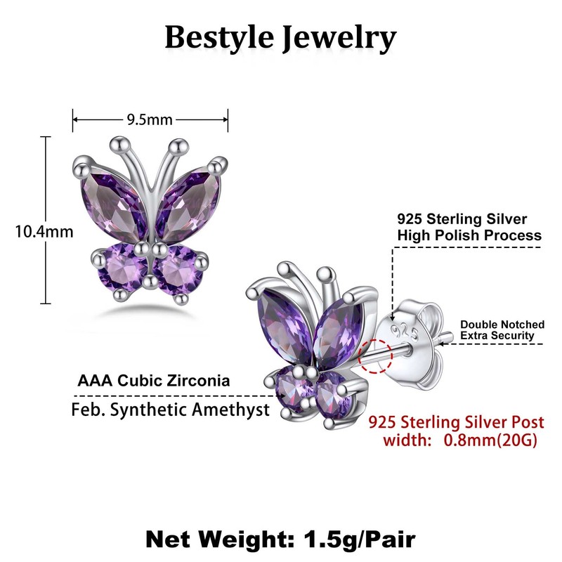Bestyle Crystal Stud Earrings 925 Sterling Silver Girls Children Earrings with Synthetic Zirconia Birthstone Butterfly Earrings Comes in Jewellery Gift Box, Sterling Silver