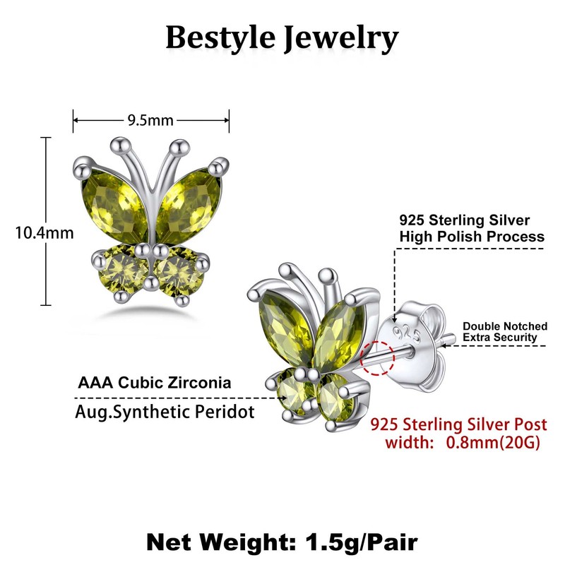 Bestyle Crystal Stud Earrings 925 Sterling Silver Girls Children Earrings with Synthetic Zirconia Birthstone Butterfly Earrings Comes in Jewellery Gift Box, Sterling Silver