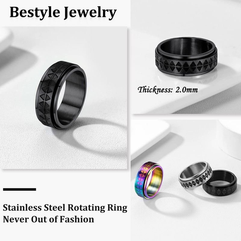 Bestyle Men's Rotating Anxiety Ring Spinner Hip Pop Ring Stainless Steel, Stainless Steel