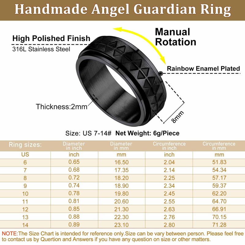 - ⭐ Beautiful, shiny stainless steel ring with a simple fashionable element. The middle part rotates well, which can relieve stress and anxiety properly.