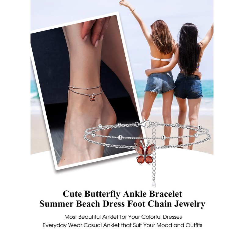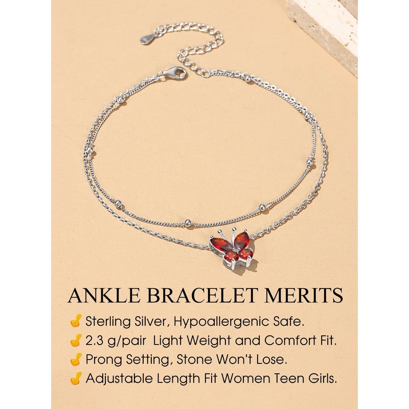 - Bestyle Anklet for women silver 925 birthstones double interlocking pearl necklace with chevron chain zirconia butterfly is a great gift for any occasion, can be adjusted between 22 cm and 27 cm circumference.