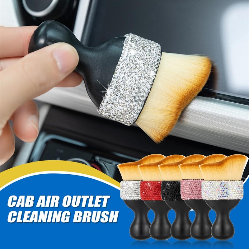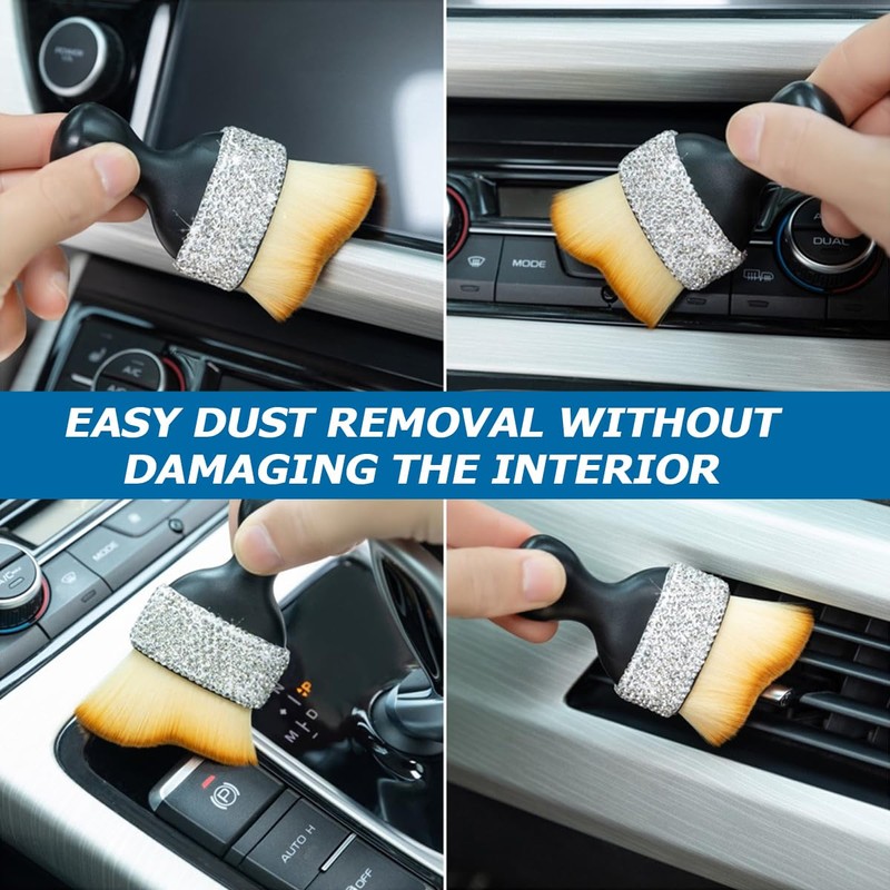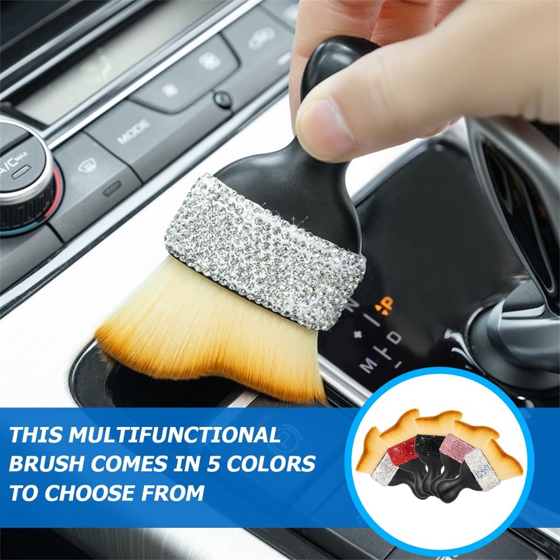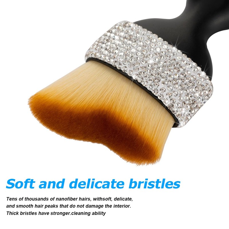 BESULEN Bling Car Detailing Brush, Soft Bristle Auto Interior Dust Cleaning Tool, Crystal Diamond Curved Brush for Automotive Dashboard, Leather, Car Seat, Air Conditioner Vents, Computer (AB)