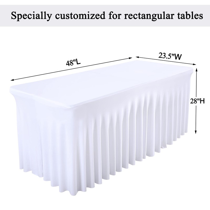 Besutolife White Spandex Tablecloths Wedding Table Skirt for Rectangle Tables 4ft One-Piece Wrinkle-Resistant Ruffles Design Perfect for Banquets Parties