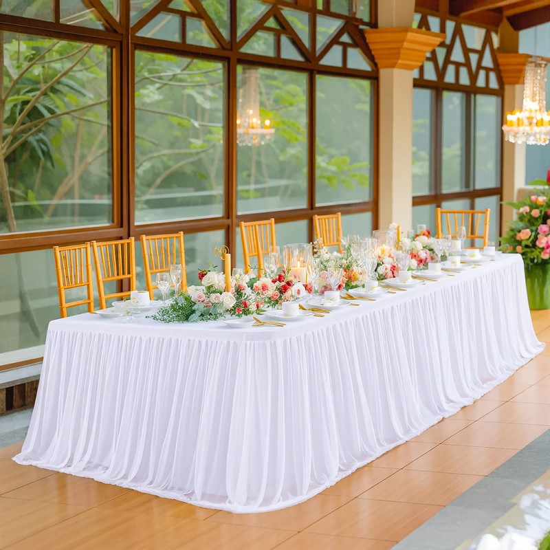 Besutolife White Tulle Tablecloth for Rectangle Tables 6ft 3 Sides for Wedding Birthday Party Bridal Shower White Tutu Ruffle Table Cloth Banquet Dinner Table Decorations 2Pack