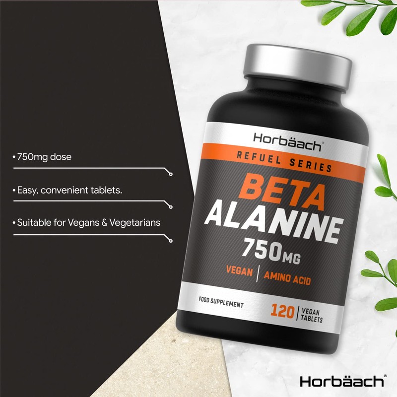 Beta Alanine 750mg | 120 Vegan Tablets | Premium Amino Acid Supplement for Men & Women | by Horbaach