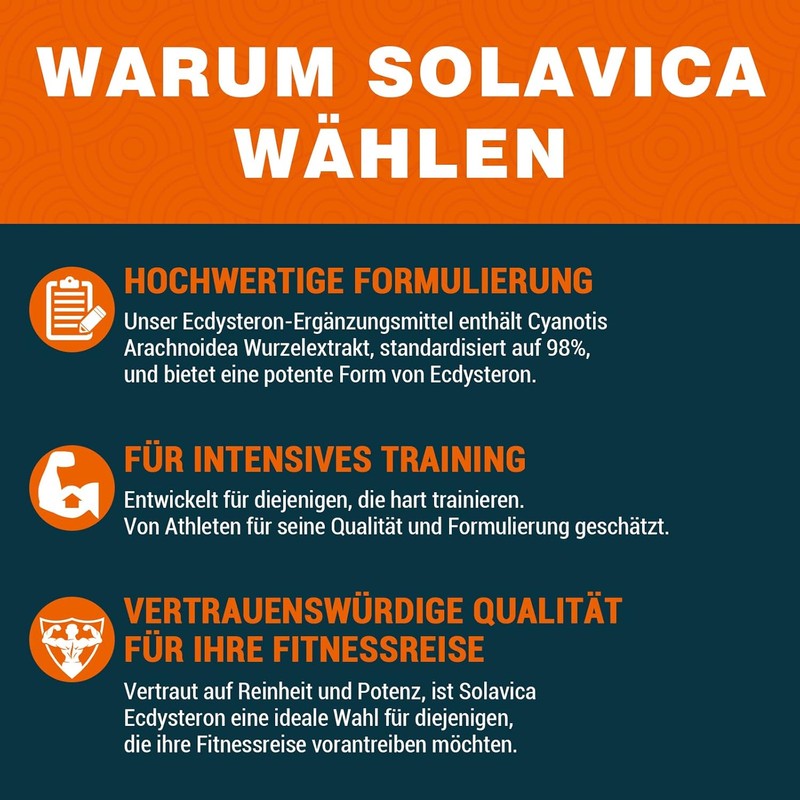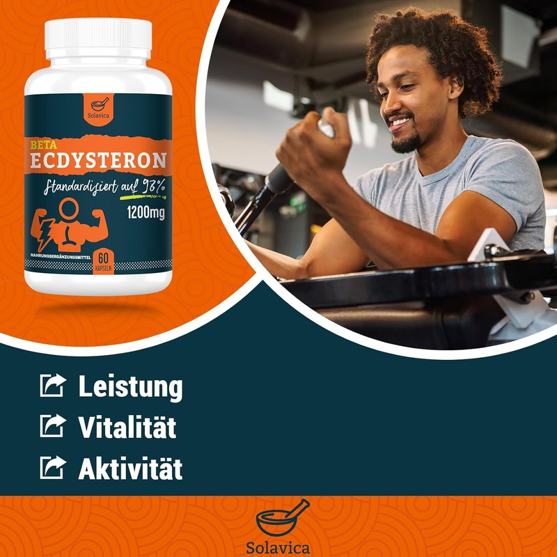- 30-day supply – Each can of Solavica Ecdysteron contains 60 capsules with 1200 mg each. Designed for continuous use over a month.