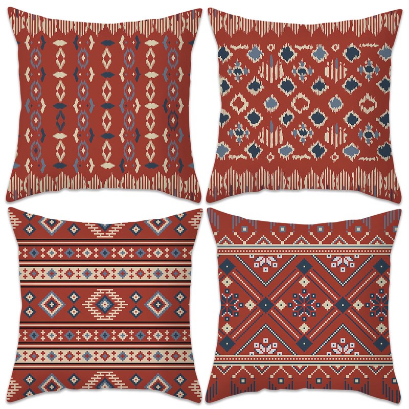 Betadistor Red Cushion Covers Set of 4, 45 x 45 cm Boho Style Decorative Throw Pillow Covers 18" x 18" Square Exotic Pillow Cases for Couch Bedroom Home Office, Exotic Red, 507-0133