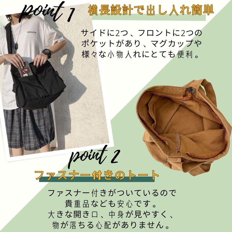 - Multi-pocket design: The main entrance is zippered so you can rest assured that your valuables will be safe when you need it. The large opening makes it easy to see the contents and you don't have to worry about things falling out. There are also 2 pockets on the inside. One open pocket, one zippered pocket is perfect for organizing small items or storing valuables. There are 2 pockets on the side for storing plastic bottles and folding umbrellas. The front side has two pockets for storing small items such as bath cards, tissue, sunglasses, etc. The gusset is 5.9 inches (15 cm) wide and can store more than it appears, making it perfect for daily use