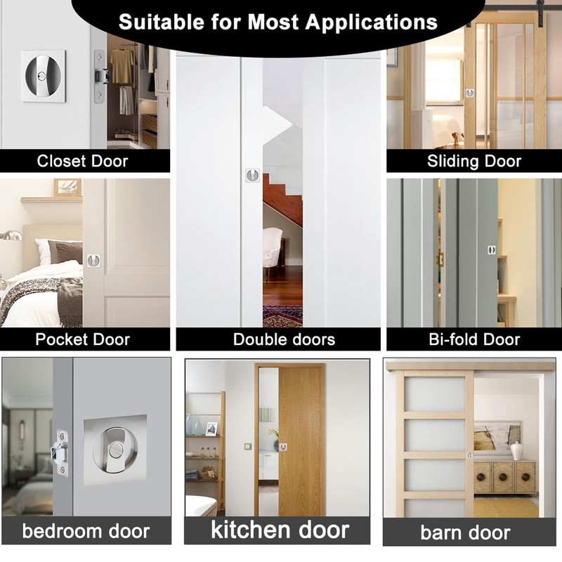 - New style -- The new pocket sliding door lock does not need to be slotted at the edge, the original reserved round door cutout can simply complete the installation without the door warping and becoming deformed and unstable. The unique louvre-like recessed design perfectly conceals the door opening while blending in well with the door panel.