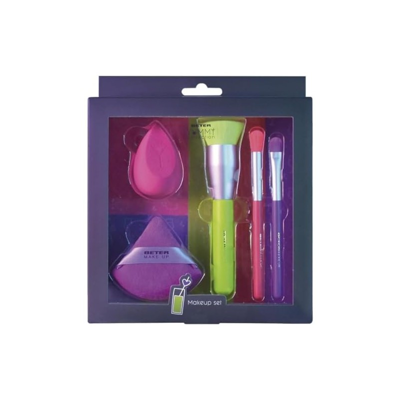 Beter - Make-up-Pinselset mit Quaste und Schwamm, 3 Pinsel + Beauty Blender und Quaste, Make-up-Pinselset, Für Puder, Grundierung, Concealer und Lidschatten, Make up Brush Pinselset, Ideal Geschenk
