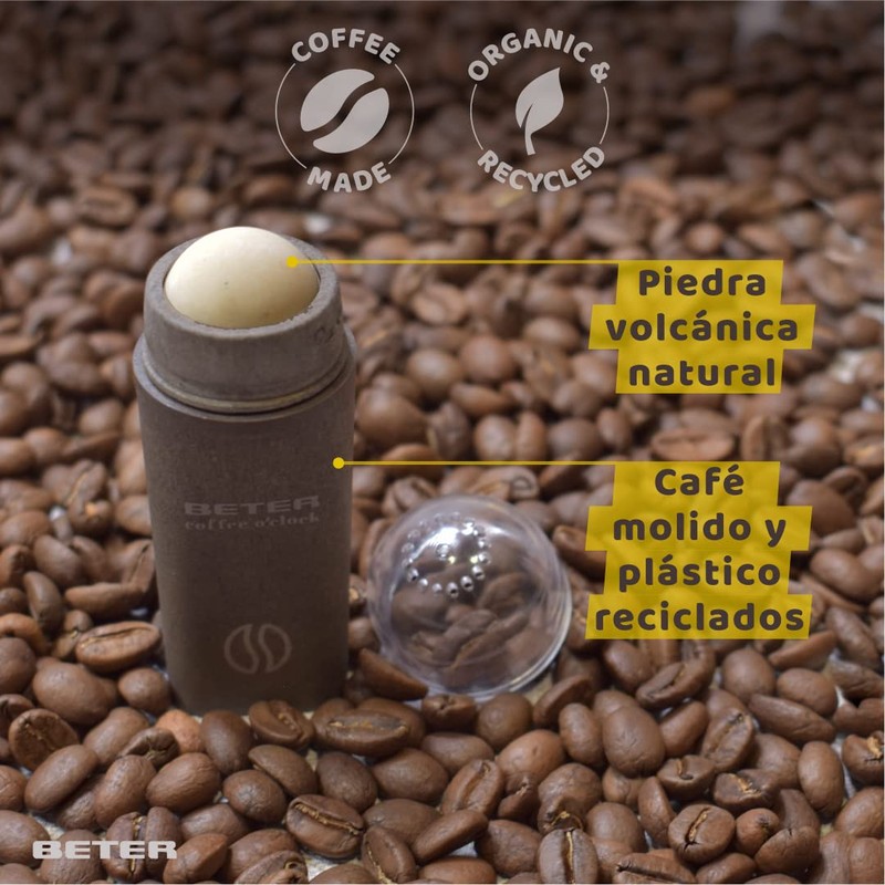 - COFFEE LIKE PROTAGONIST: We have incorporated recycled ground coffee into products that are usually only plastic. A sustainable ingredient that minimises the use of plastic and contributes to the preservation of the environment by reusing an organic waste.