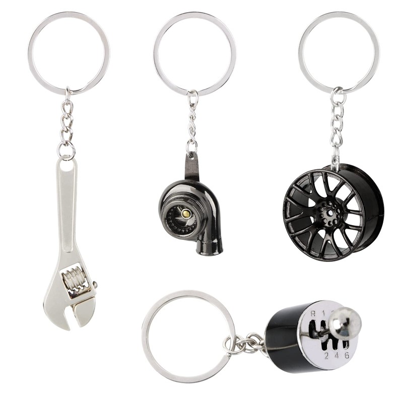 - 🚗LIEFERUMFANG: 4 verschiedene Schlüsselanhänger in Schraubenschlüssel-, Radnabe-, Shifter-, Turboform