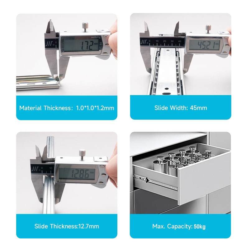 • 1.77'' in width.0.5'' in thickness.100 LB load capacity.Full extension.Get more space for your cabinet.