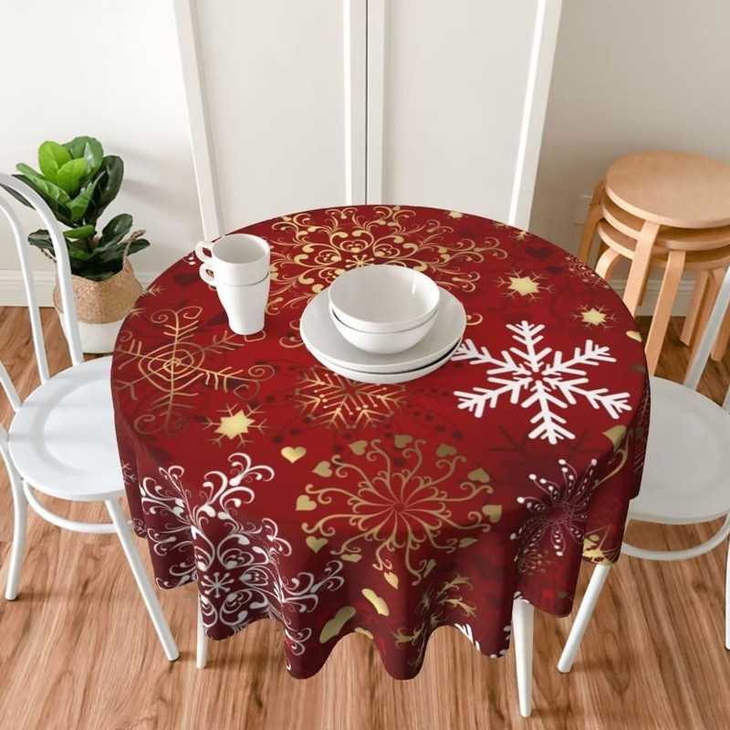 BETGINY Christmas Tablecloth 60 Inch Round Gold Love Heart Shape Red Snowflakes Tablecloths Fabric Farmhouse Xmas Winter Holiday Table Cloth Decorative for Picnic Party Home Indoor Outdoor