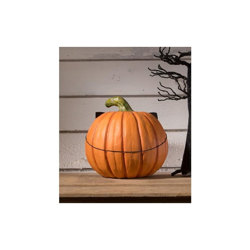 Bethany Lowe Cat Masquerade Pumpkin Jack-O-Lantern, Paper, Orange
