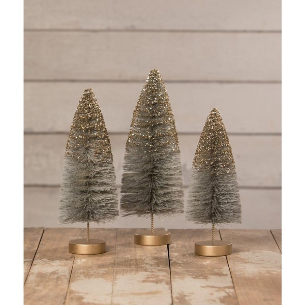 Bethany Lowe Midnight Shine Bottle Brush Trees, Set of 3