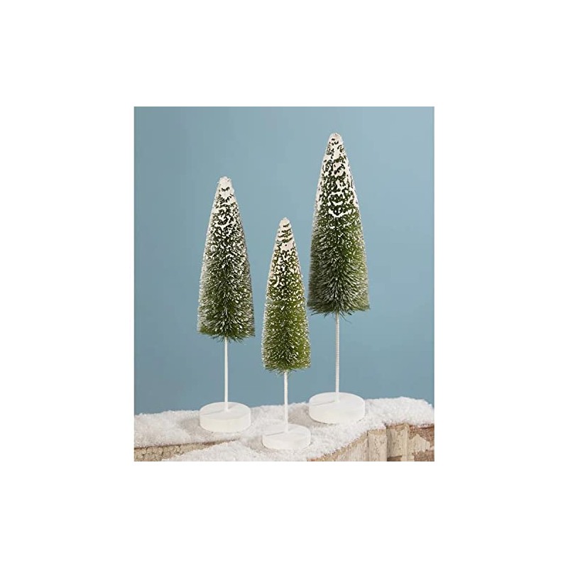 Bethany Traditional Christmas Snow Covered Green Bottle Brush Tree, Set of 3