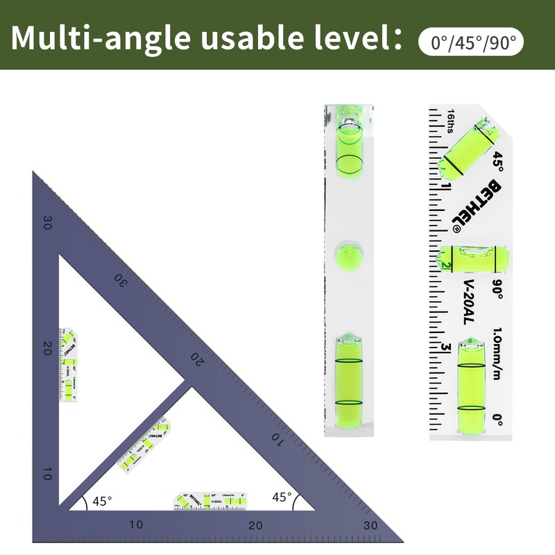 BETHEL Mini Bubble Level - 3-in-1 Multi-Angle (45°/90°/180°) Cross-Check Pocket Spirit Shatterproof Level for Picture Hanging, Wall Framing, Tile Layout & DIY Measuring Tools