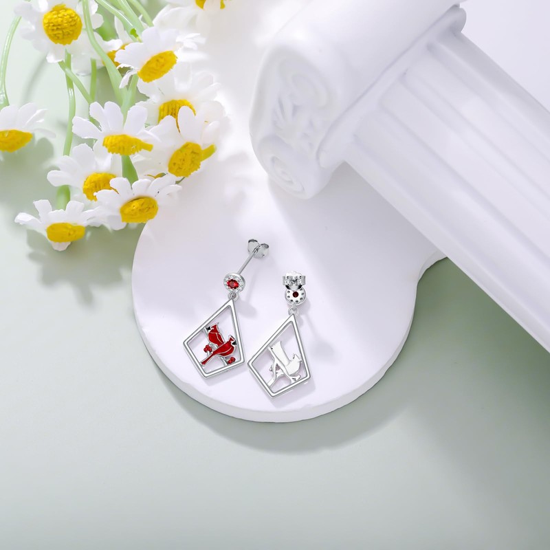 BETHZA Red Cardinal Earrings for Women Sterling Silver 925 Garnet Cardinal Bird Dangle Earrings Cute Cardinals Jewelry for Women