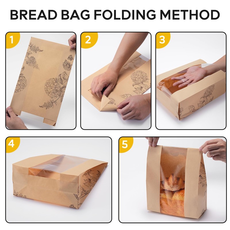 - Stand-Up Design with Clear Window: These bread paper bags for homemade bread include a transparent front panel and square bottom, so they stand up when filled and fold flat when stored.