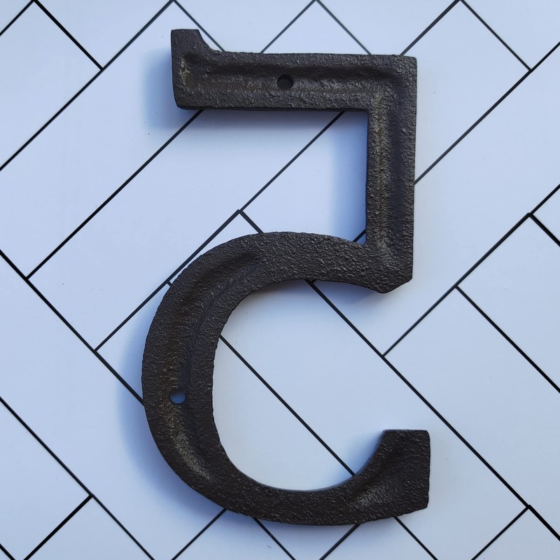 BetLight Cast Iron House Numbers-5 Inch Rustic Address Number- Solid & Heavy Duty/Easy Install with Matching Screws-Number 5
