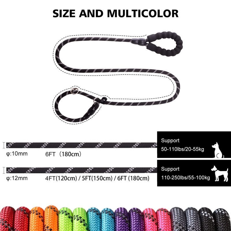 - DURABLE & LIGHTWEIGHT - The slip leads dog leash is made of high strength nylon rope, 3/8”thick rope suitable for puppy and small dogs, 1/2”thick rope suitable for mediume and large breed dogs
