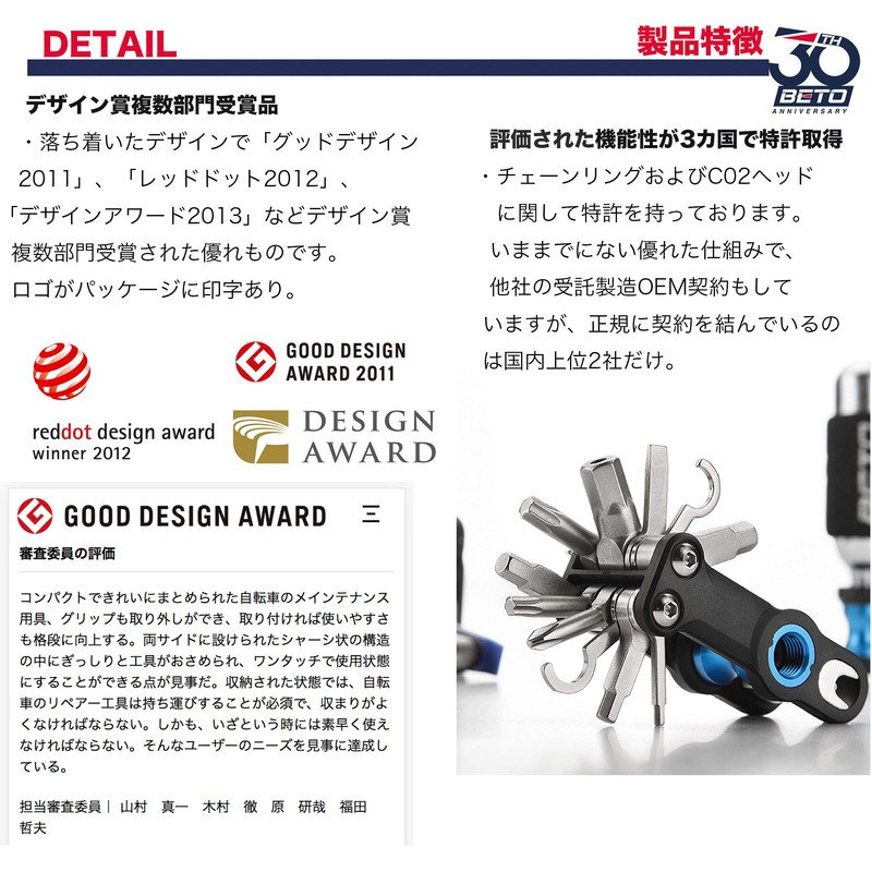 BETO 18-IN-1 Multi-Tool Road Bike with CO2 Head, Good Design Award, Made in Taiwan, Bicycle Tool Set, QikFix Supreme BT-343