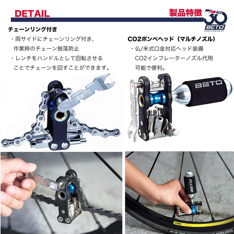 - Specifications: 18-IN-1 multi-tool (with chainring, CO2 head multi-nozzle)