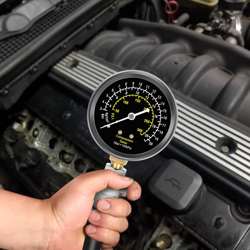 BETOOLL 13pcs Compression Tester with Spark Plug Tester - 300PSI Engine Cylinder Compression Gauge Automotive Tool