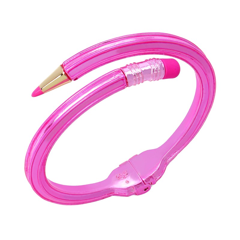 - TRENDY BRACELETS : Playful pink pencil motif hinged bangle bracelet perfect for back to school. Bracelet has an easy hinge closure. Made from metal and enamel.