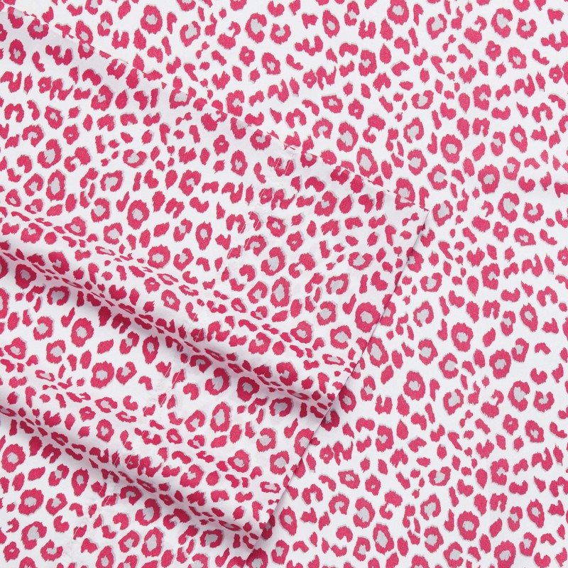 Bring new life to your bedding ensemble with the Betsey's Leopard Pink Sheet Set from Betsey Johnson. The cozy microfiber sheets and pillowcases feature a pink leopard print design on the white ground. Sheets are machine washable for easy care. Twin sheet set includes: one flat sheet (92"L x 62"W), one fitted sheet (75"L x 39"W) and one pillowcase (20"L x 30"W). Full sheet set includes: one flat sheet (92"L x 78"W), one fitted sheet (75"L x 54"W) and two pillowcases (20"L x 30"W). Queen sheet set includes: one flat sheet (102"L x 88"W), one fitted sheet (80"L x 60"W) and two pillowcases (20"L x 30"W). King sheet set includes: one flat sheet (102"L x 104"W), one fitted sheet (80"L x 78"W) and two pillowcases (20"L x 40"W).