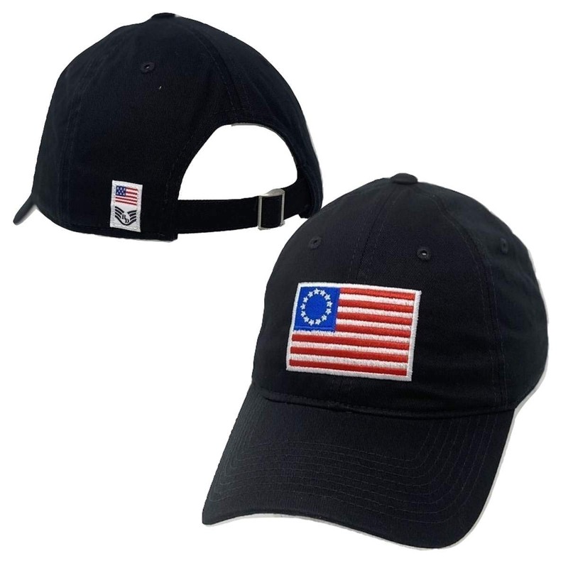 Betsy Ross USA First US Flag American Patch United States America Polo Hat Cap Black