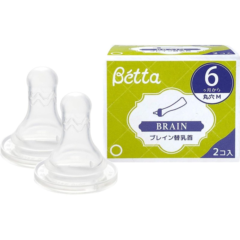 Betta Brain Baby Bottle Nipples, Round Hole Fast Flow, Size M, 2-Pack, 6+ Months
