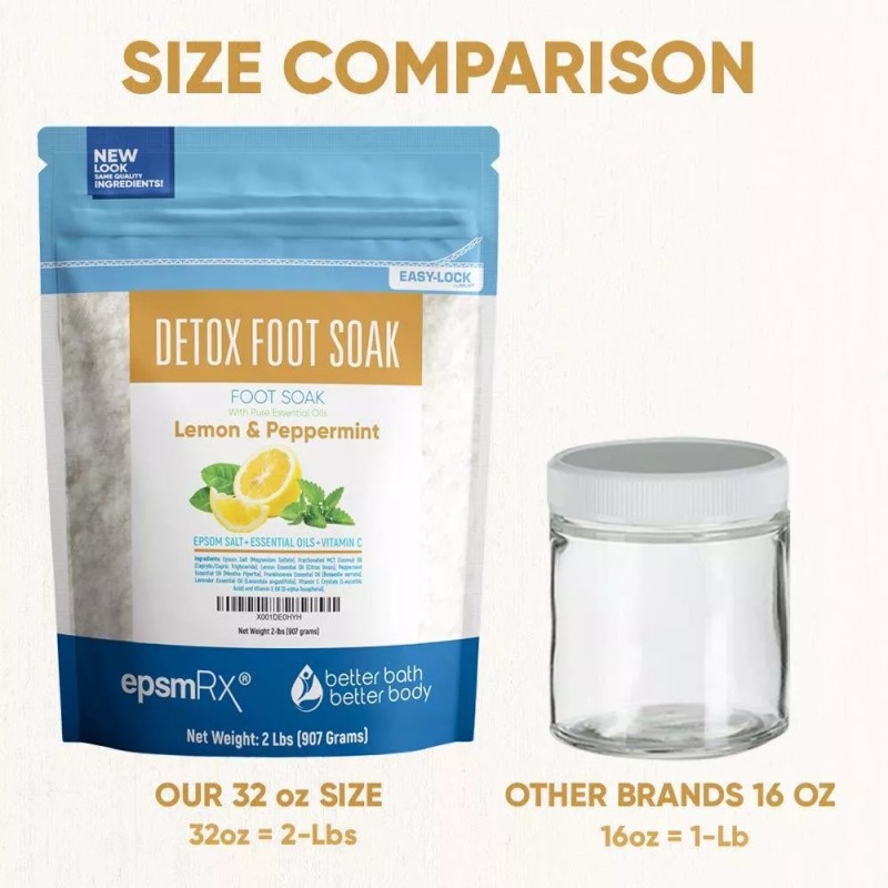 Better Bath Better Body Desintoxicación Pie Empapa 32 Onzas De Sal De Epsom Con Limó