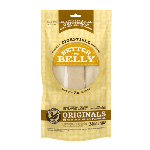 - GREAT FLAVOR: Better Belly Originals Large Rolls offer real beef sirloin flavor and are formulated without chicken product.
