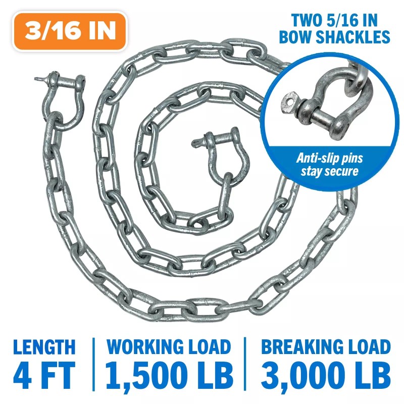 - HEAVY DUTY MATERIAL: Our 3/16" by 4 foot hot dipped galvanized anchor chain is highly durable and resistant to corrosion, making it perfect for marine environments. Outlast traditional steel boat chain options or PVC coated anchor chain solutions.