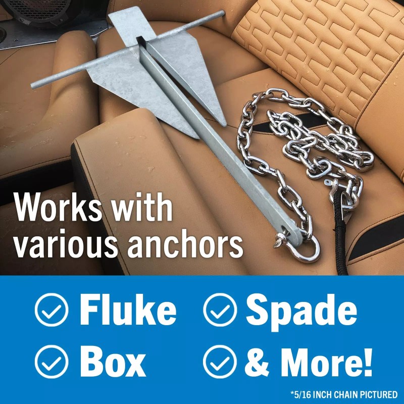 - RELIABLE CONNECTIONS: Each chain comes with 2 galvanized 1/4" bow shackles to ensure a secure connection with the anchor lead chain and anchor. Chain is abrasion resistant and weighted to properly keep your anchor shank parallel with the sea floor.
