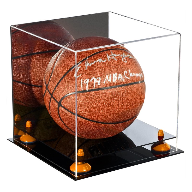 Better Display Cases Acrylic Full Size Basketball Display Case with Orange Risers and Mirror (A001-OR)